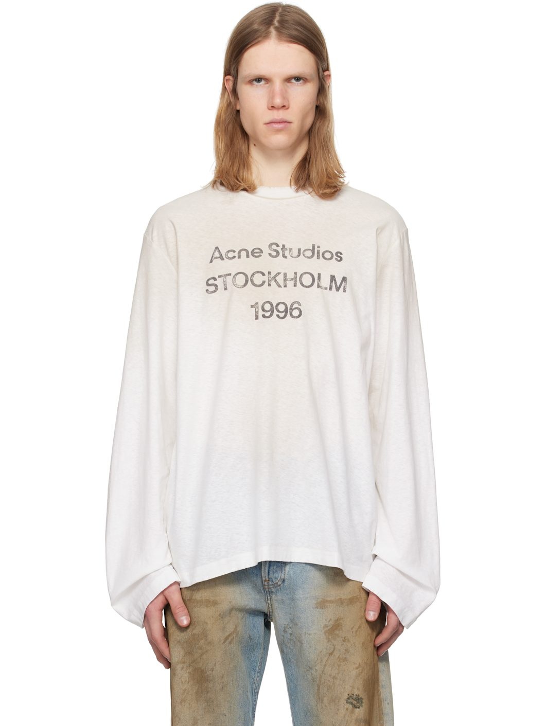 Organic cotton- and true hemp-blend jersey T-shirt. Distressing and smudging throughout. · Rib-knit crewneck · Logo printed at front · Dropped shoulders Supplier color: Dusty white 85% organic cotton, 15% true hemp. Made in Portugal 251129M213025
