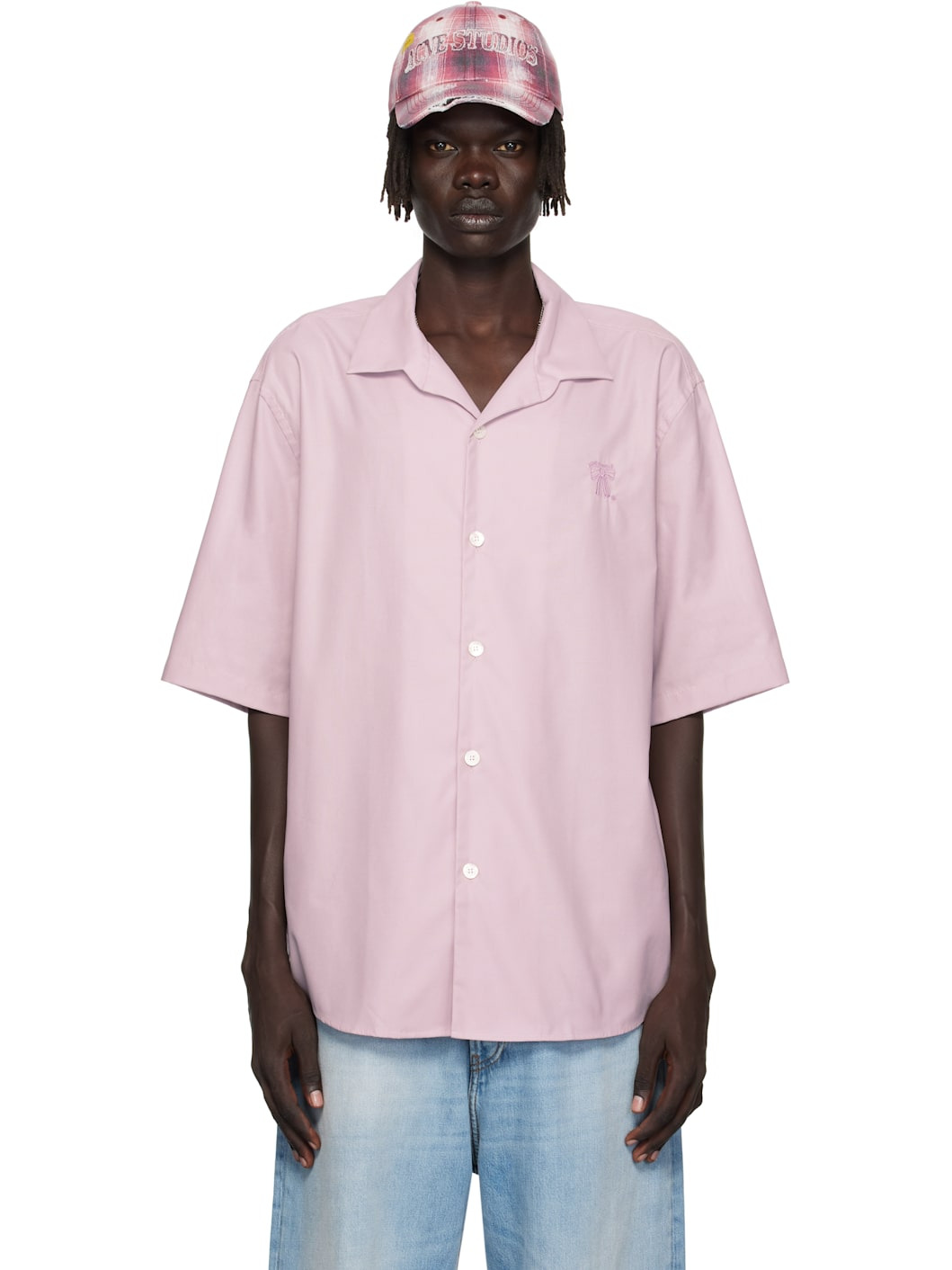 Organic cotton pique shirt. · Open spread collar · Button closure · Embroidered logo graphic at chest · Shirttail hem · Dropped shoulders · Logo-engraved mother-of-pearl hardware Supplier color: Lilac 100% cotton. Made in Morocco 252129M192015
