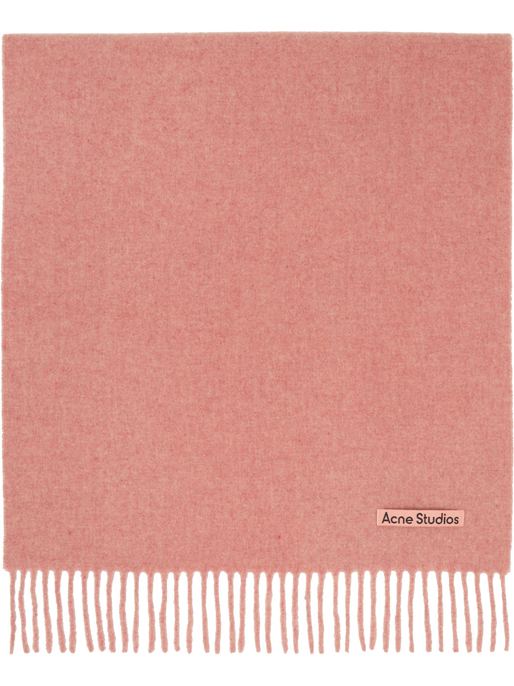 Rectangular RWS-certified wool flannel scarf. · Logo patch at face · Fringed detailing at ends · L78" x W18" Supplier color: Rose melange 100% wool. Made in Italy 252129M150013