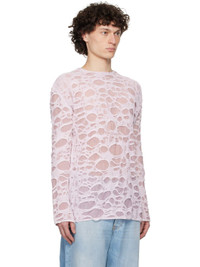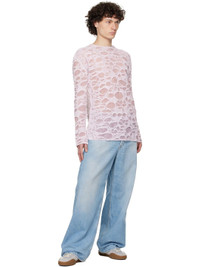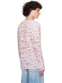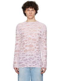 Semi-sheer open-knit cotton-blend sweater. Laser distressing and laddering throughout. · Lightweight · Layered construction · Rib-kit crewneck, hem, and cuffs Supplier color: Light pink/White 78% cotton, 15% metallic fiber, 7% nylon. Made in Italy 251129M201018