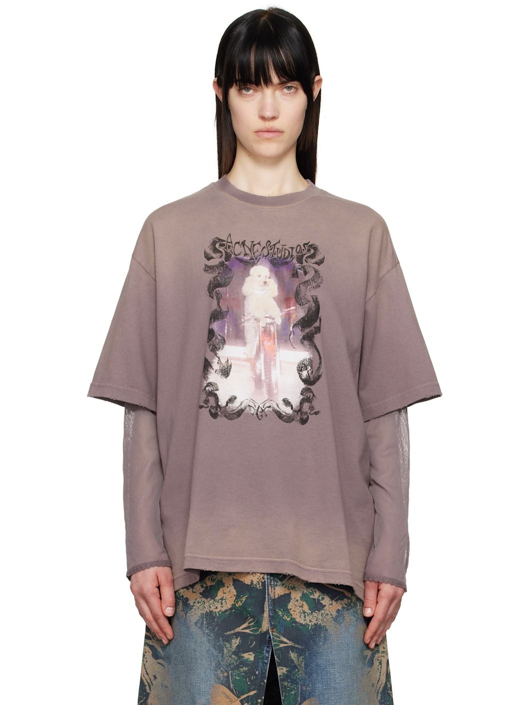 Relaxed-fit organic cotton jersey T-shirt. Distressing and sprayed-dyed fading throughout. · Rib-knit crewneck · Logo graphic printed at front · Dropped shoulders · Integrated nylon mesh sleeves Supplier color: Dark mauve Body: 100% organic cotton. Trim: 100% nylon. Made in Portugal 251129F110058
