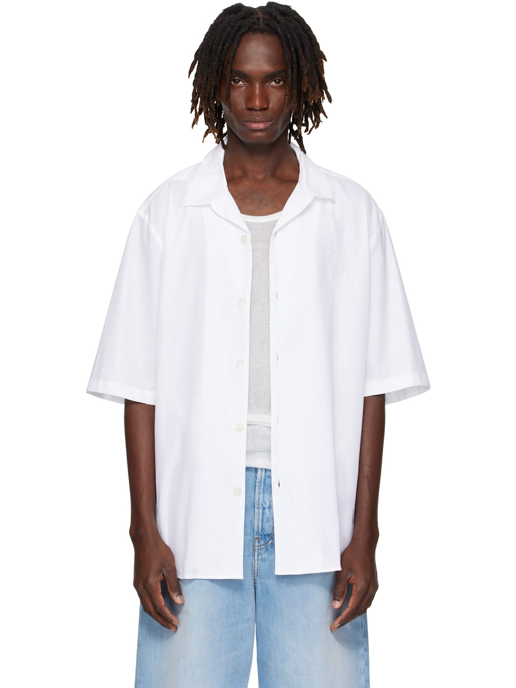 Organic cotton oxford cloth shirt. · Open spread collar · Button closure · Logo and graphic embroidered at chest · Shirttail hem Supplier color: White 100% organic cotton. Made in Morocco 252129M192001