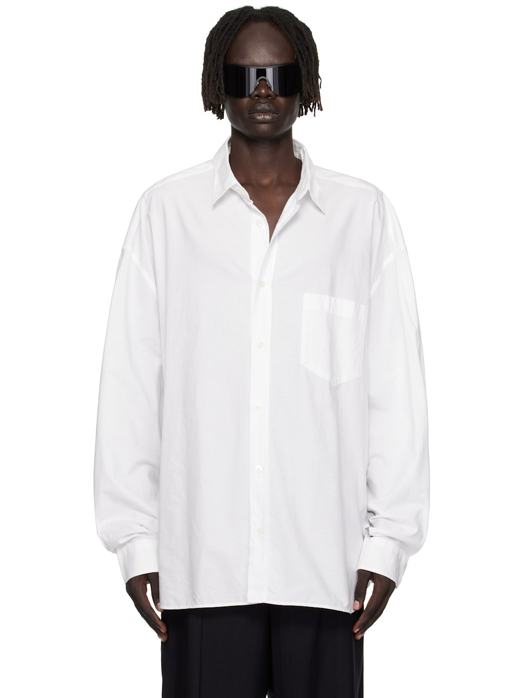 Organic cotton poplin shirt. · Spread collar · Button closure · Patch pocket at chest · Shirttail hem · Logo-woven trim at side seams and sleeves · Dropped shoulders · Buttoned barrel cuffs · Logo-engraved mother-of-pearl hardware Supplier color: White multicolor 100% cotton. Made in Morocco 252129M192017