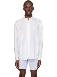 Lyocell poplin shirt. Jacquard stripes throughout. · Spread collar · Button closure · Logo embroidered at chest · Shirttail hem · Single-button barrel cuffs · Twin pleats at back yoke Supplier color: White