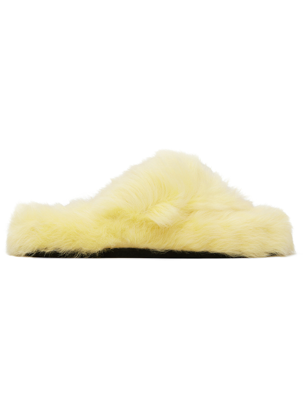 Shearling slip-on sandals. · Open toe · Thong-style strap · Logo embossed at grained calfskin footbed · Rubber sole Supplier color: Canary yellow Upper: lambskin. Sole: rubber. Made in Italy 252129F121001