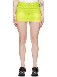 Non-stretch denim skirt. Smudging throughout. · Low-rise · Belt loops · Five-pocket styling · Button-fly · Logo patch at back waistband · Contrast stitching in tan Supplier color: Neon yellow 100% cotton. Made in Italy 241129F090002