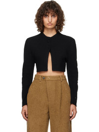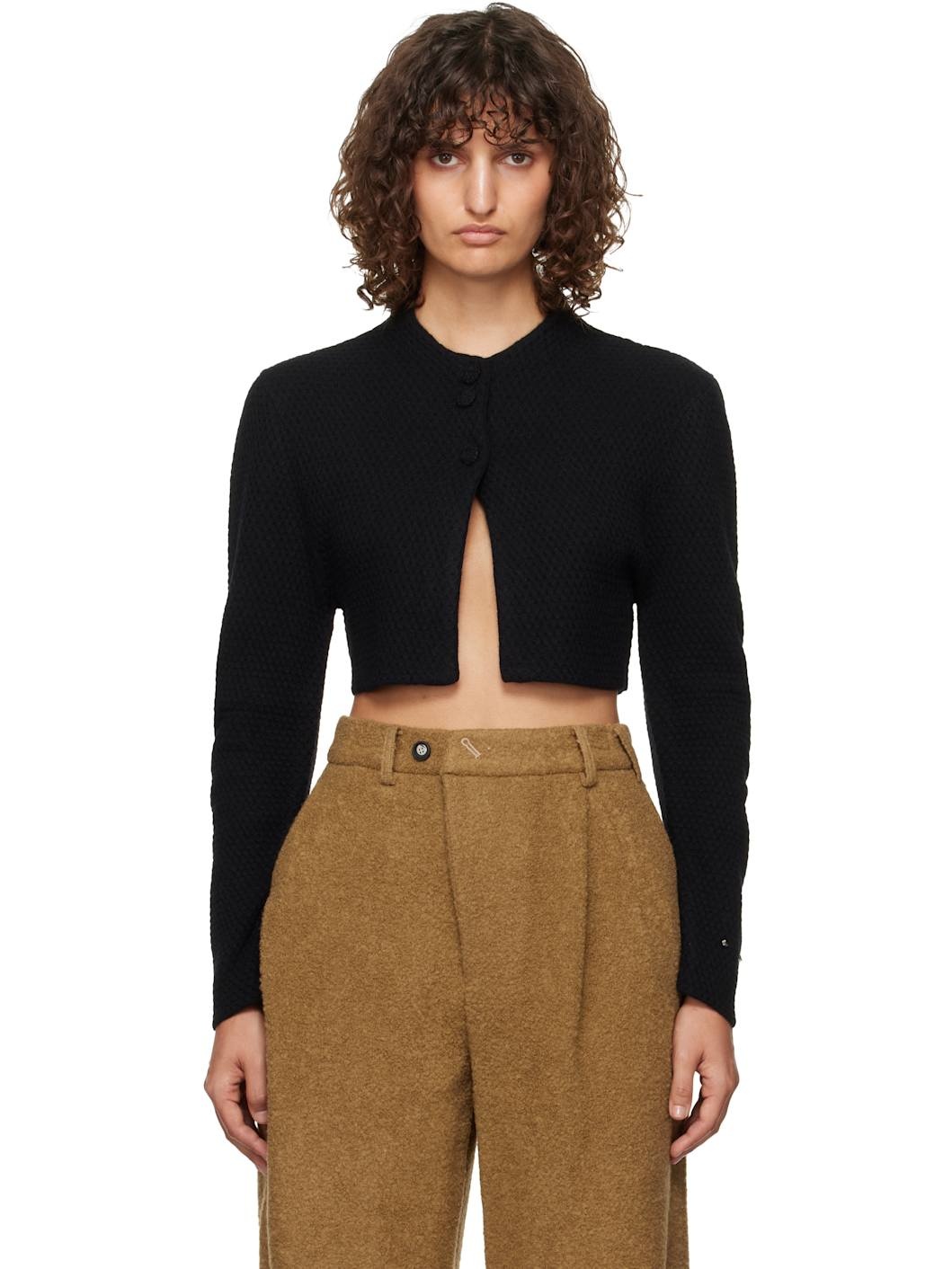 Textured knit wool- and nylon-blend cardigan. · Round neck · Button closure · Cropped hem · Logo hardware at cuff · Fixed hardware and logo flag at back Supplier color: Noir 80% wool, 20% nylon. Made in South Korea 242039F063004