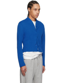 Knit polyester cardigan. · Y-neck · Twisted button closure · Cutouts and twisted detailing at back · Frayed logo flag with topstitching at back Supplier color: Blue 100% polyester. Made in South Korea 251039M200006
