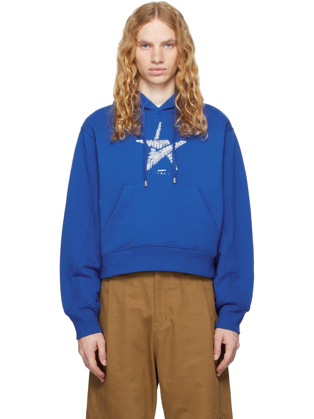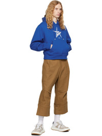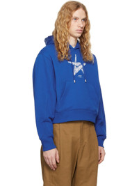 French terry hoodie. · Drawstring at hood · Logo graphic embroidered at chest · Kangaroo pocket · Rib-knit hem and cuffs · Pleat at back sleeves · Button-style logo appliques at back · Logo-engraved silver-tone hardware Supplier color: Blue Body: 100% cotton. Trim: 96% cotton, 4% elastane. Made in South Korea 242039M202005