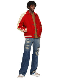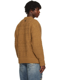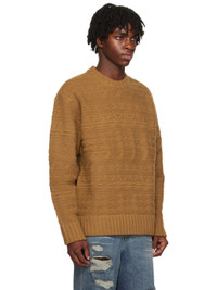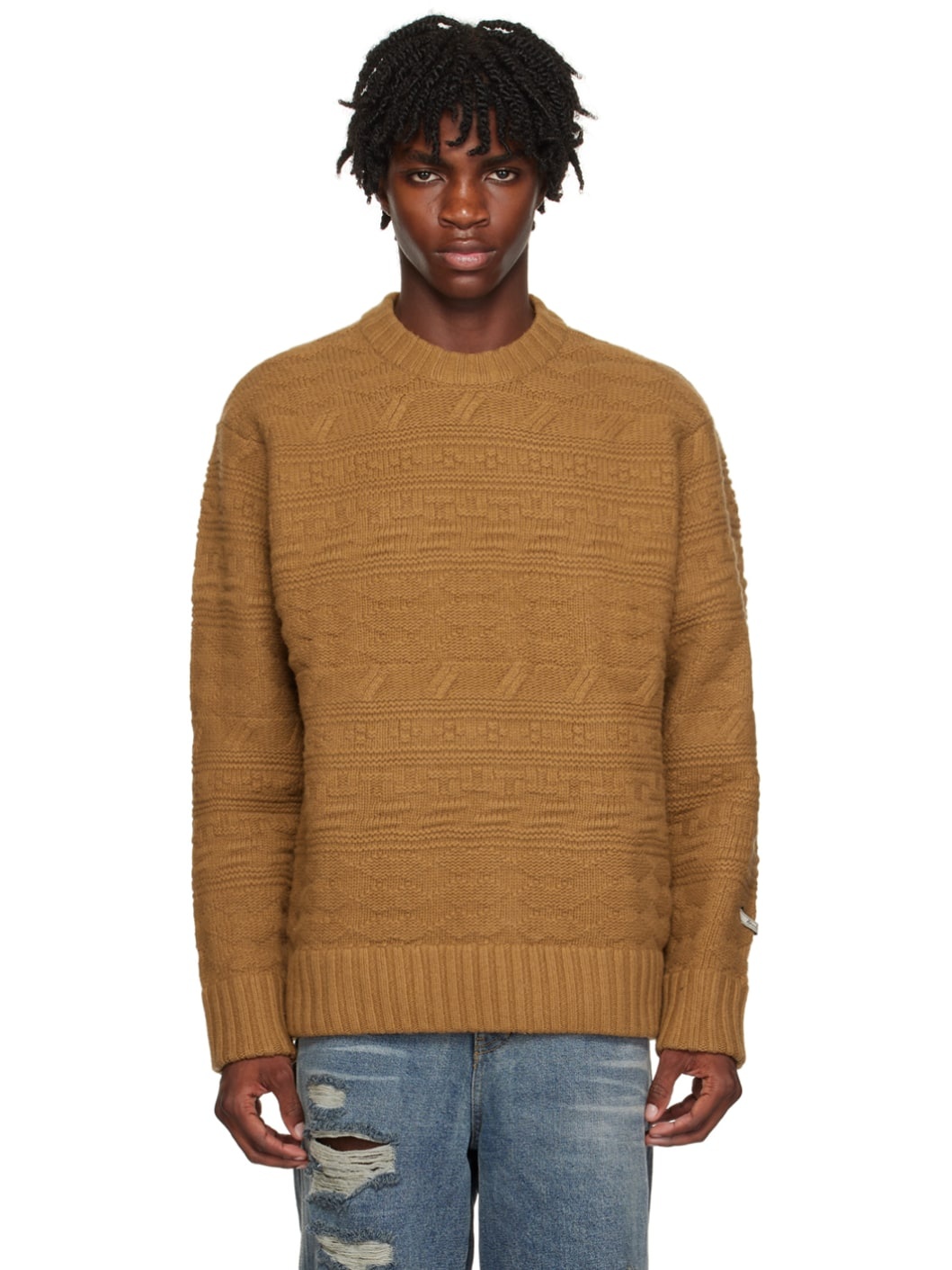 Textured knit wool- and nylon-blend sweater. · Rib knit crewneck, hem, and cuffs · Dropped shoulders · Logo flag at cuff · Logo plaque at back collar Supplier color: Beige 80% wool, 20% nylon. Made in South Korea 232039M201001