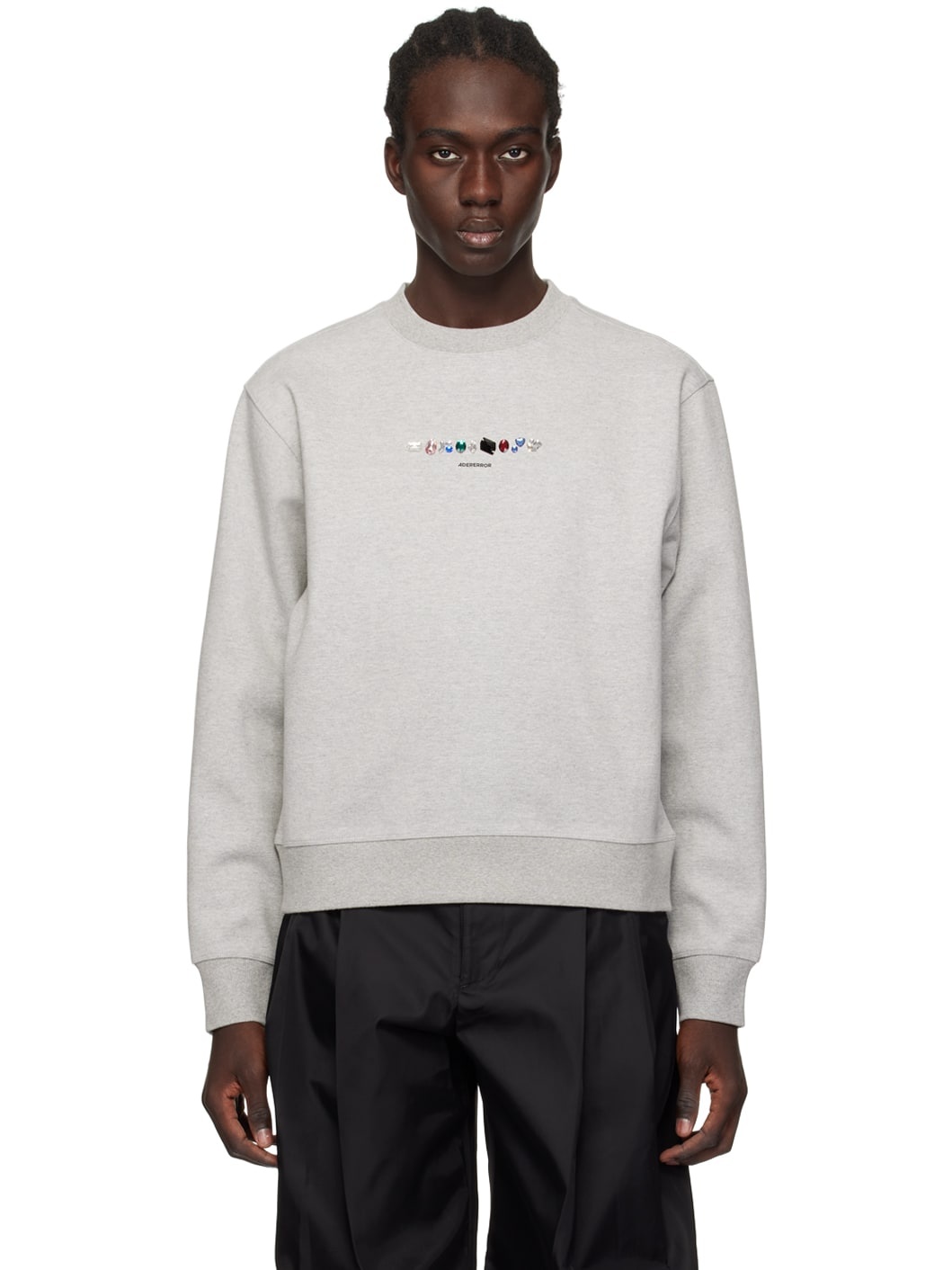 Double-faced cotton-blend jersey sweatshirt. · Rib knit crewneck, hem, and cuffs · Swarovski® crystals and logo printed at chest · Dropped shoulders · Logo patch at back Supplier color: Grey Body: 77% cotton, 23% polyester. Trim: 96% cotton, 4% elastane. Made in South Korea 231039M204016