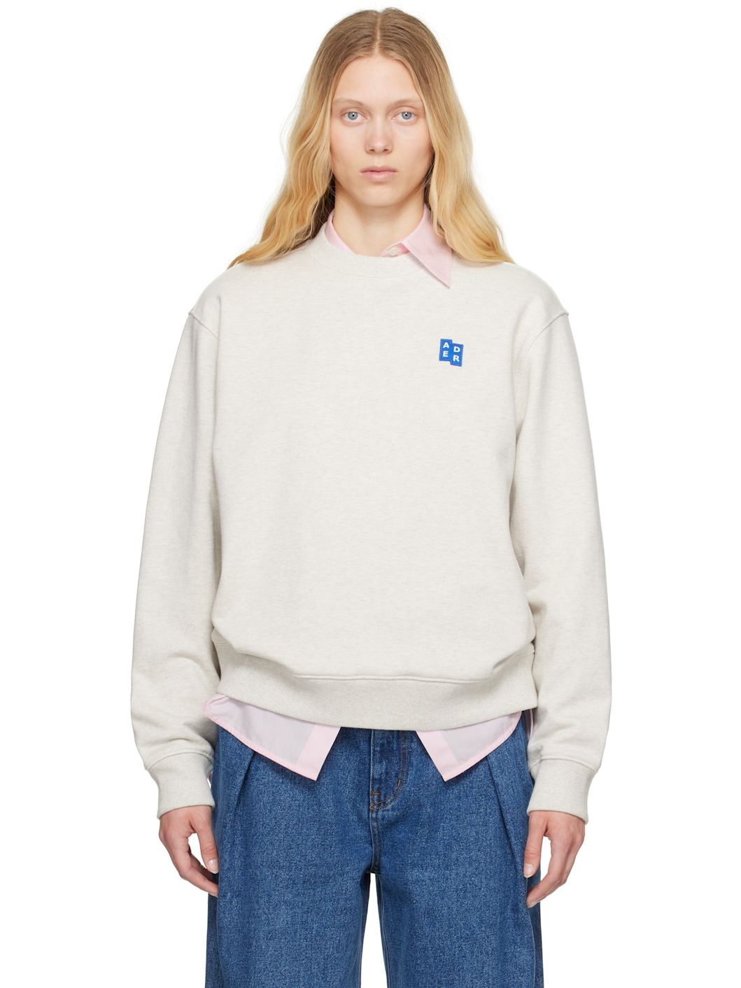 French terry sweatshirt. · Rib-knit crewneck, hem, and cuffs · Embroidered logo patch at chest · Dropped shoulders · Logo flag with topstitching at back Part of the Significant collection. Supplier color: Oatmeal Body: 100% cotton. Trim: 96% cotton, 4% elastane. Made in South Korea 251039F098004