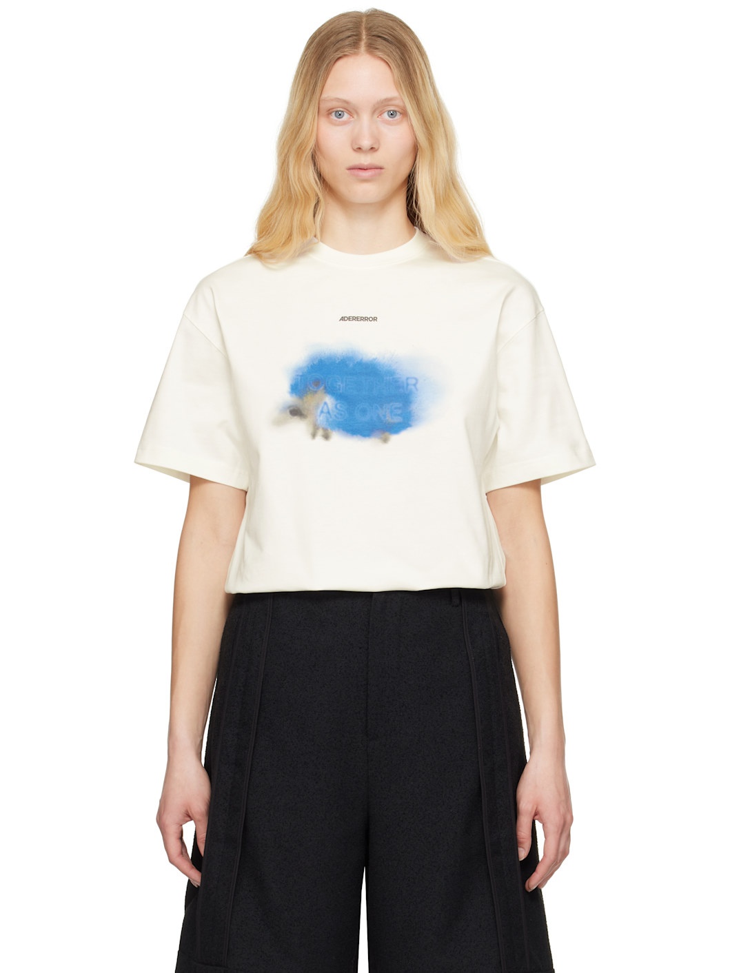 Cotton-blend jersey T-shirt. · Rib-knit crewneck · Logo graphic and text printed at front · Frayed flag with topstitching at back Supplier color: Off white Body: 73% cotton, 27% polyester. Trim: 96% cotton, 4% elastane. Made in South Korea 251039F110005