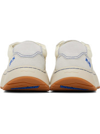 Low-top suede and canvas sneakers in off-white. · Square toe · Lace-up closure · Padded tongue and collar · Logo embroidered at outer side · Mesh lining · Logo embossed at rubber midsole · Treaded rubber sole · Contrast stitching in blue Supplier color: Off white Upper: leather, textile. Sole: rubber. Made in South Korea 251039M237005