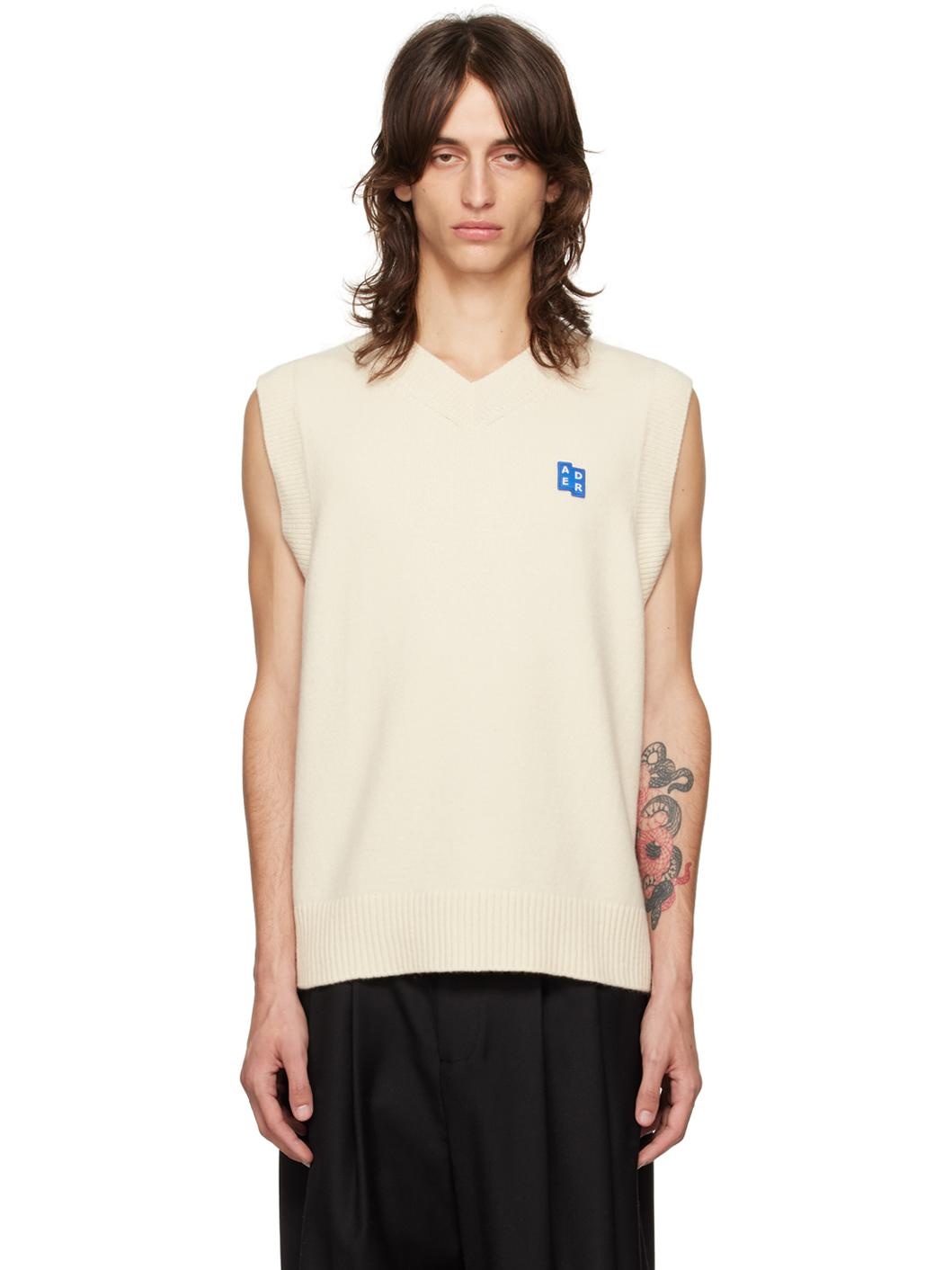 Knit wool- and cotton-blend vest. · Rib-knit V-neck, hem, and armscyes · Embroidered logo patch at chest · Logo flag and topstitching at back Part of the Significant collection. Supplier color: Oatmeal 77% wool, 23% cotton. Made in South Korea 242039M206000