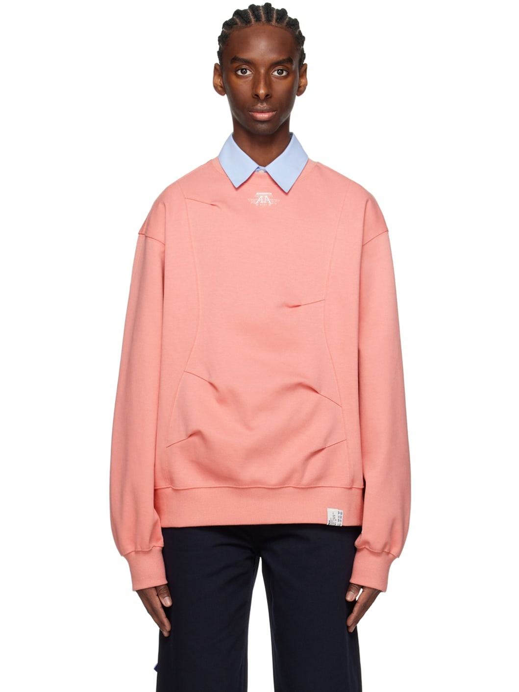 Cotton- and polyester-blend jersey sweatshirt. · Rib knit crewneck, hem, and cuffs · Logo embroidered and printed at chest · Darts at front · Dropped shoulders · Logo patches at front hem and back · Pleat and logo flag at back Supplier color: Pink Body: 74% cotton, 26% polyester. Trim: 96% cotton, 4% elastane. Made in South Korea 241039M204011