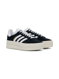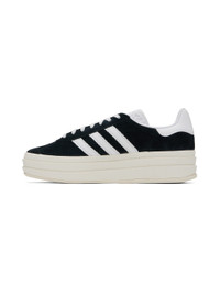 Low-top suede sneakers in black. · Lace-up closure · Logo printed at tongue · Padded collar · Signature serrated stripes at sides · Logo printed at outer side · Faux-leather and jersey lining · Logo embossed at stacked rubber midsole · Treaded rubber sole · Platform: H1.75" Supplier color: Core black/Cloud white/Core white Upper: leather, synthetic. Sole: rubber. Made in Viet Nam 242751F128070
