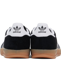 Low-top suede sneakers in black and white. · Buffed leather trim throughout · Lace-up closure · Logo embossed at textured tongue · Padded collar · Text stamp at outer side · Signature serrated stripes at sides · Logo printed at heel tab · Buffed leather and jersey lining · Logo embossed at treaded rubber sole Supplier color: Core black/Cloud white/Gum Upper: leather. Sole: rubber. Made in Indonesia 251751M237155