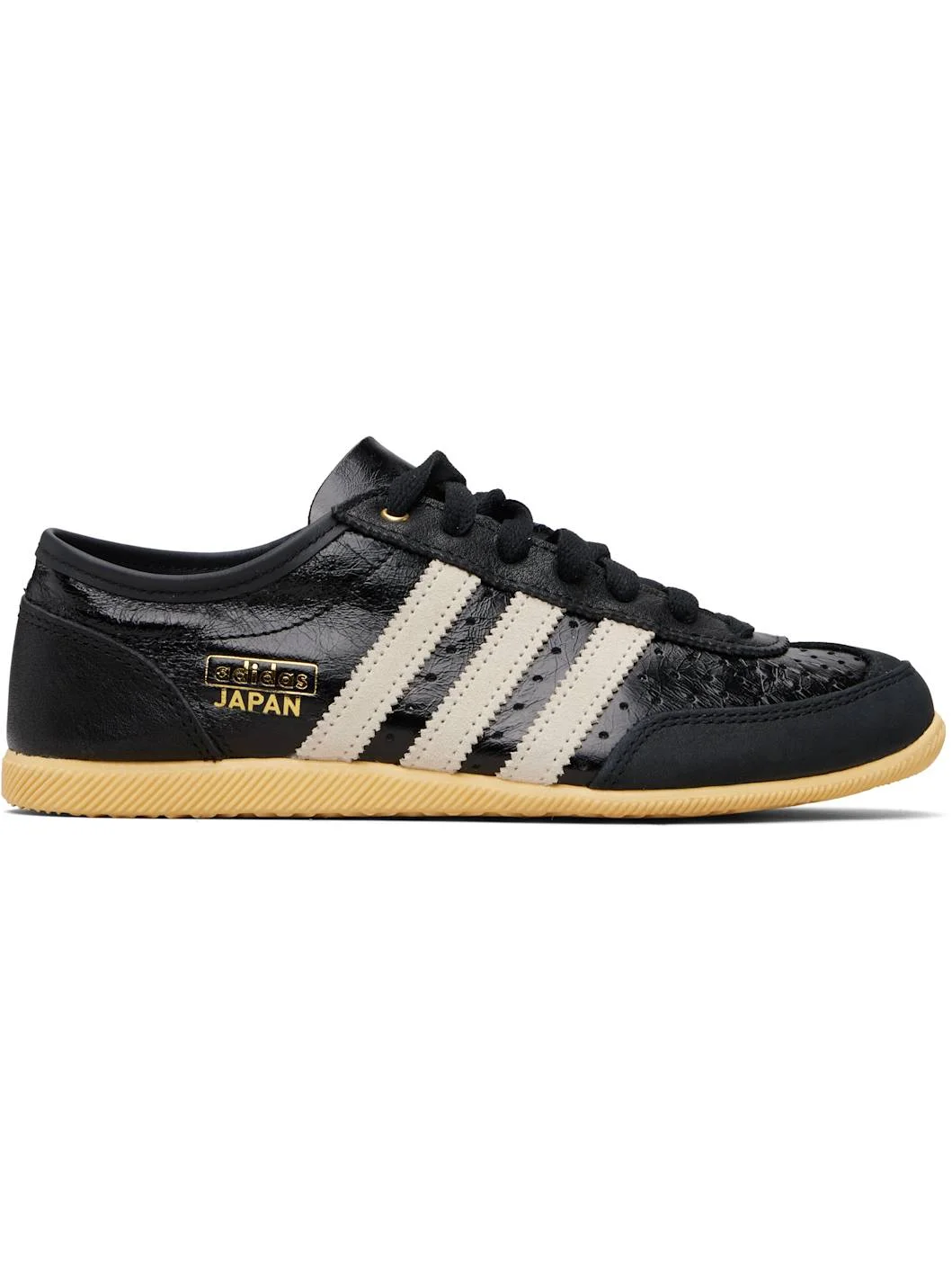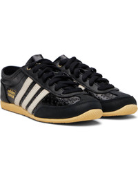 Low-top crinkled leather and suede sneakers. · Perforations throughout · Lace-up closure · Logo patch at tongue · Signature serrated stripes at sides · Logo stamp at outer side · Mesh lining · Treaded rubber sole Supplier color: Black/Cream white/Orange tint Upper: leather. Sole: rubber. Made in Viet Nam 261751F128149