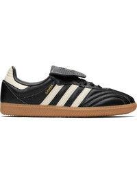 Low-top buffed leather sneakers. · Quilted toe and heel tab · Lace-up closure · Logo-embossed at extended foldover tongue · Padded collar · Text stamp at outer side · Signature serrated stripes at sides · Mesh lining · Treaded rubber sole Supplier color: Core black/Cream white/Gum Upper: leather. Sole: rubber. Made in Viet Nam 252751M237100