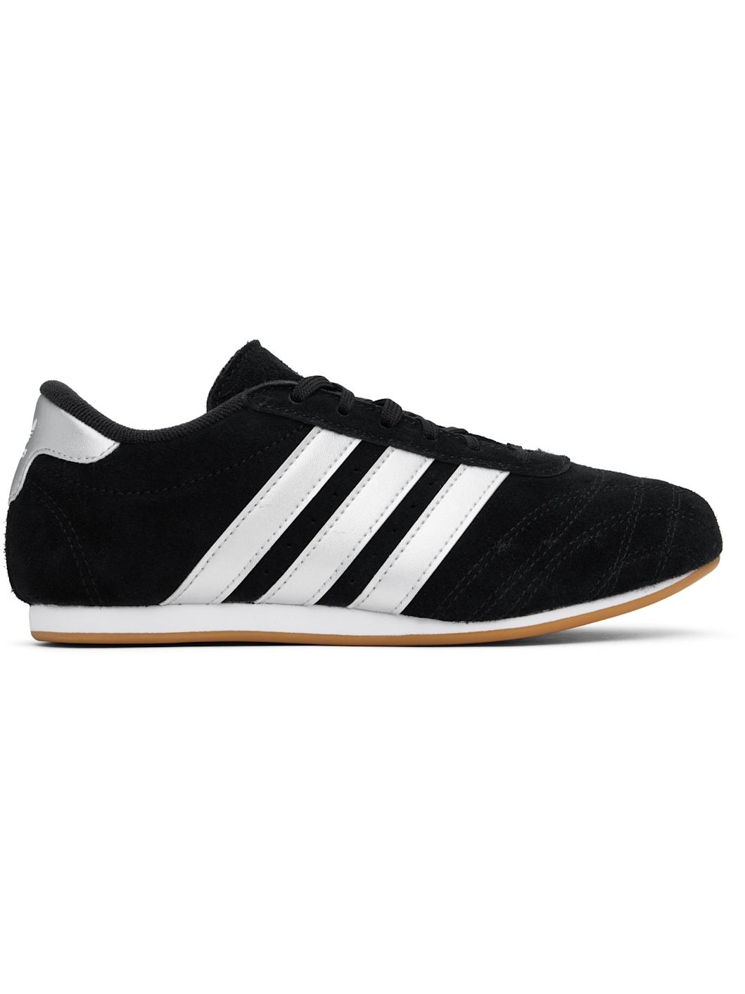 Low-top suede and buffed faux-leather sneakers in black. · Lace-up closure · Logo printed at padded tongue · Padded collar · Signature stripes and perforations at sides · Logo embossed at heel tab · Terrycloth lining · Treaded rubber sole Supplier color: Core black/Silver metallic/Cloud white Upper: leather, synthetic. Sole: rubber. Made in Viet Nam 251751F128172