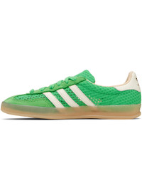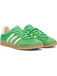 Low-top mesh, grained faux-leather, and faux-suede sneakers in green. · Lace-up closure · Padded collar · Signature serrated stripes at sides · Logo printed at heel tab · Grained leather lining · Logo embossed at textured rubber midsole · Treaded rubber sole Supplier color: Energy green/Off white/Magic beige Upper: textile, synthetic. Sole: rubber. Made in Viet Nam 252751F128014