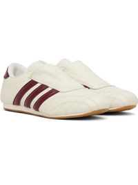 Low-top buffed leather sneakers. · Quilted detailing at toe · Logo embossed at vamp and heel tab · Concealed elasticized gusset · Padded tongue and collar · Signature stripes and perforations at sides · Buffed leather and mesh lining · Treaded rubber sole Supplier color: Off white/Noble maroon Upper: leather. Sole: rubber. Made in Viet Nam 252751F128076