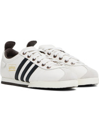 Low-top buffed leather sneakers in off-white. · Suede trim at toe · Lace-up closure · Padded collar · Signature serrated stripes at sides · Pull-tab at sides and heel collar · Logo stamp at outer side · Grained leather lining · Foam rubber midsole · Treaded rubber sole Supplier color: Cloud white/Core black/Brown Upper: leather. Sole: rubber. Made in Viet Nam 251751F128066