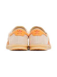 Low-top suede sneakers in orange and beige. · Lace-up closure · Logo stamp at padded tongue · Padded collar · Signature serrated stripes at sides · Logo stamp at outer side · Logo embossed at heel tab · Buffed leather lining · Treaded rubber sole Supplier color: Crystal sand/Hazy orange/Collegiate orange