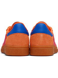 Low-top satin sneakers. · Suede trim throughout · Lace-up closure · Logo patch at tongue · Padded collar · Signature serrated stripes at sides · Text bonded at outer side · Jersey lining · Logo embossed at textured rubber midsole · Treaded rubber sole Supplier color: Solar orange/Lucid pink/Gum Upper: textile, leather. Sole: rubber. Made in Viet Nam 252751F128021