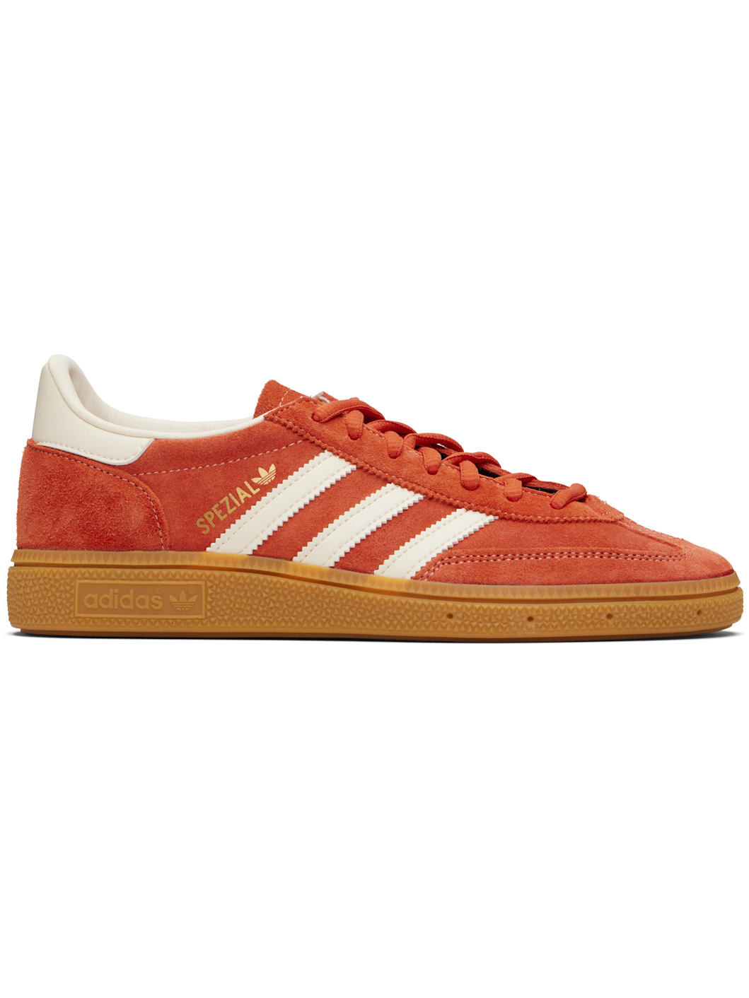 Low-top faux-suede and buffed faux-leather sneakers. · Lace-up closure · Logo patch at tongue · Padded tongue and collar · Signature serrated stripes at sides · Text and logo stamp at outer side · Treaded rubber sole Supplier color: Preloved red/Cream white/Crystal white Upper: synthetic. Sole: rubber. Made in Viet Nam 252751M237148