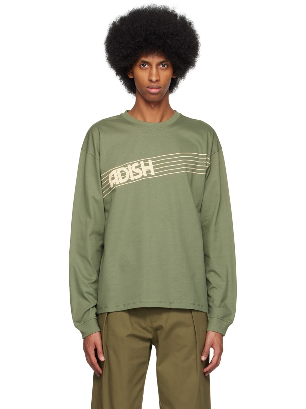 Cotton jersey T-shirt. · Rib knit crewneck and cuffs · Logo printed at front and back · Hand-embroidered detailing at back Supplier color: Olive green 100% cotton. Made in Turkey 231484M213000