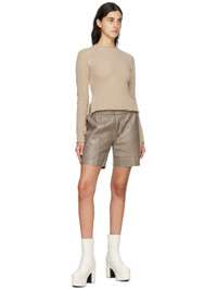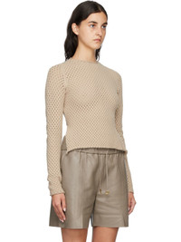 Knit stretch Ecovero™ viscose and polyester-blend sweater. · Rolled edge at crewneck, cuffs, and hem · Cutout at back · Hand-crocheted strap at back · Logo plaque at back Supplier color: Sand 70% ecovero viscose, 30% stretch polyester. Made in Serbia 222343F096000