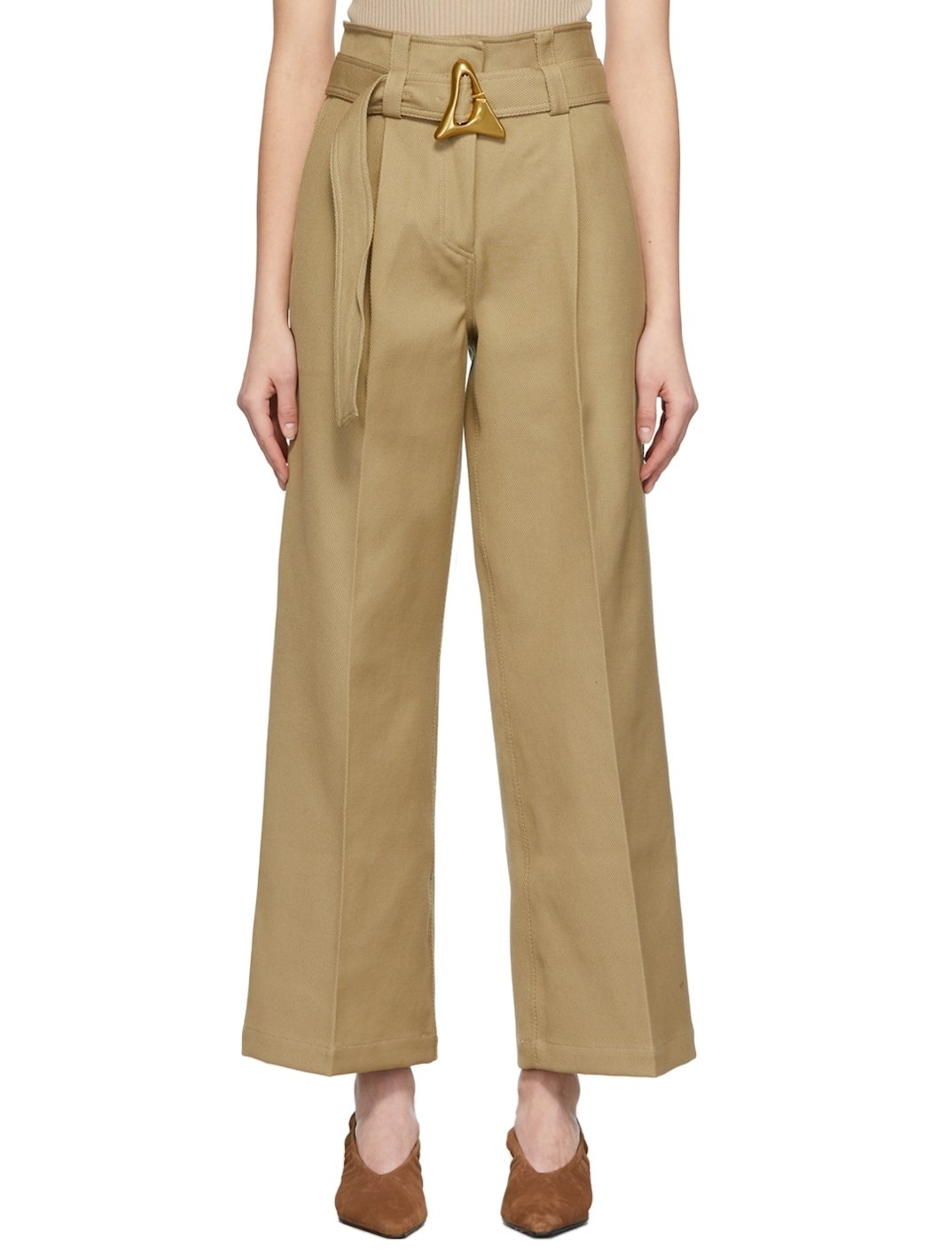 Wide-leg cotton twill trousers in beige. · Detachable and adjustable belt with signature logo pin-buckle fastening · High-rise · Four-pocket styling · Antique gold-tone hardware Supplier color: Beige 100% cotton. Made in Hungary 221343F087006