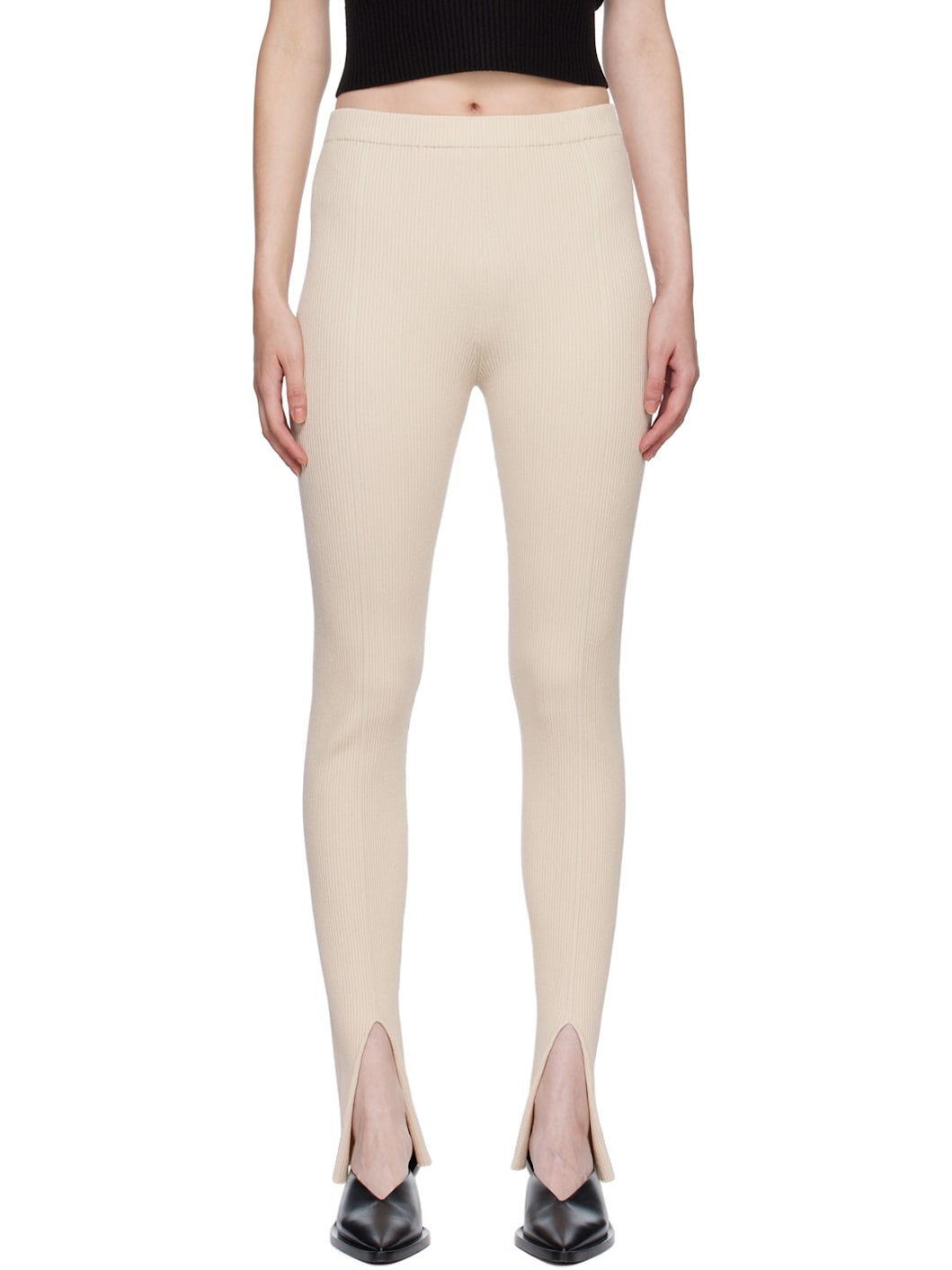 Rib knit FSC-certified viscose and polyester-blend leggings. · Elasticized waistband · Vented cuffs Supplier color: Cream 70% viscose, 30% polyester. Made in Italy 222343F085001