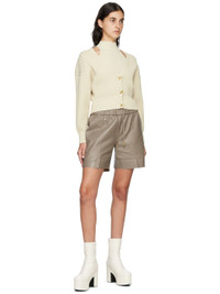 Grained lambskin shorts. · Drawstring at elasticized waistband · Single-pocket styling · Acetate-blend satin lining Supplier color: Fossil Body: 100% lambskin. Lining: 68% acetate, 32% polybutylene terephthalate. Made in Hungary 222343F088000