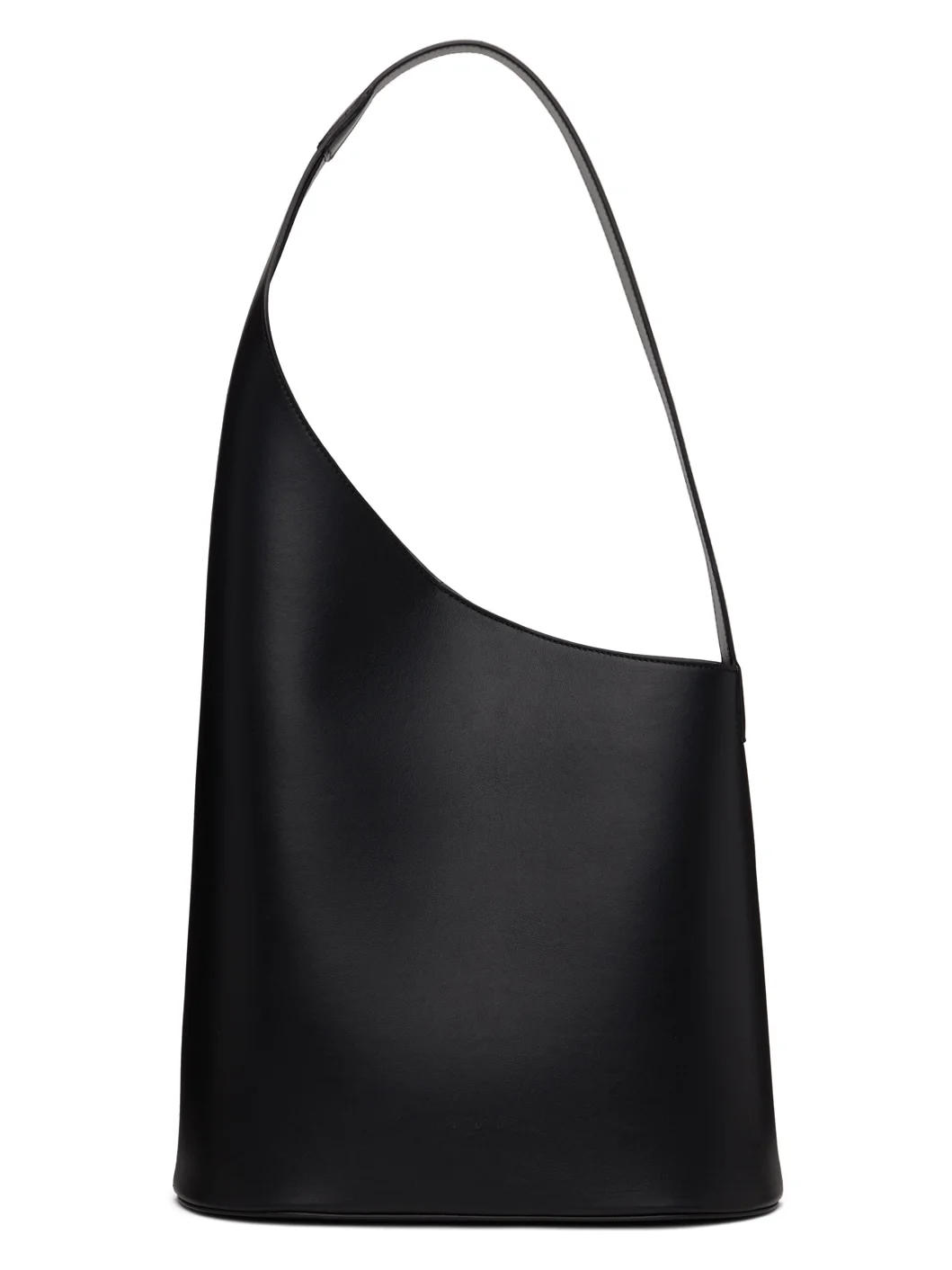 Buffed calfskin tote in black. · Integrated shoulder strap · Logo graphic embossed at face · Magnetic closure · Patch pocket at interior · Grained faux-leather lining · H22.5" x W11.75" x D5.5" Supplier color: Black