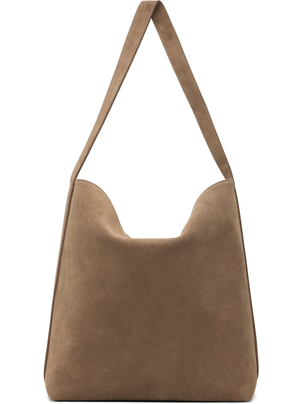 Calfskin suede tote. · Fixed shoulder strap · Logo embossed at face · Magnetic closure · Patch pocket at interior · Faille lining · H13.75" x W16" x D5.25" Supplier color: Suede date Calfskin. Made in Spain 252239F048012