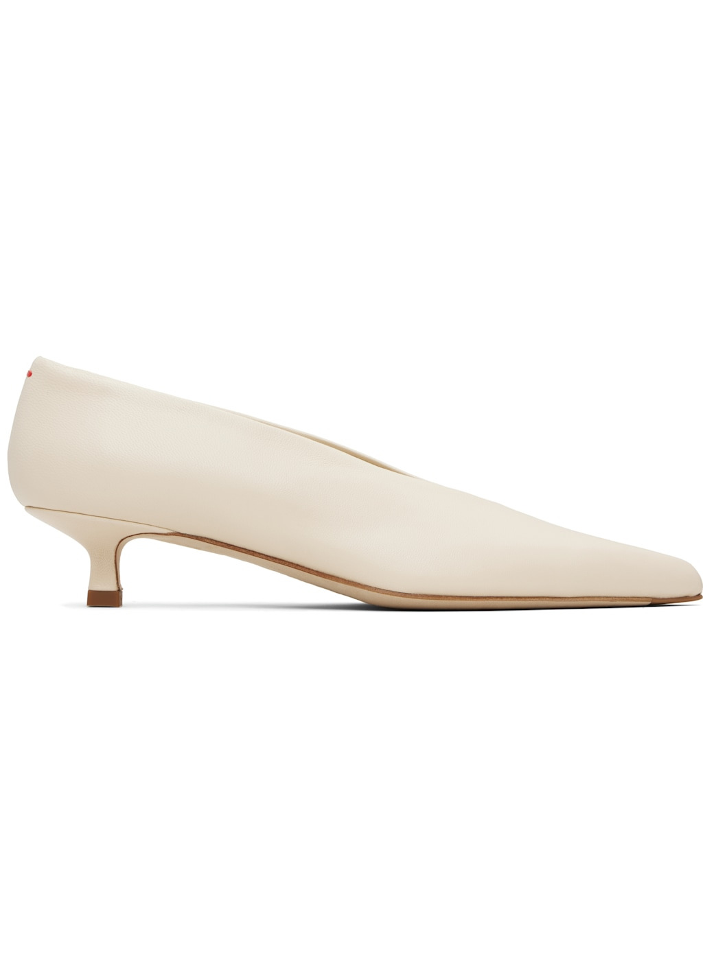 Buffed nappa leather heels. · Pointed toe · Red stitch at heel tab · Lambskin lining · Covered kitten heel · Nubuck sole with rubber injections · Heel: H1.5" Supplier color: Creamy nappa Upper: leather. Sole: leather, rubber. Made in Italy 252454F122032