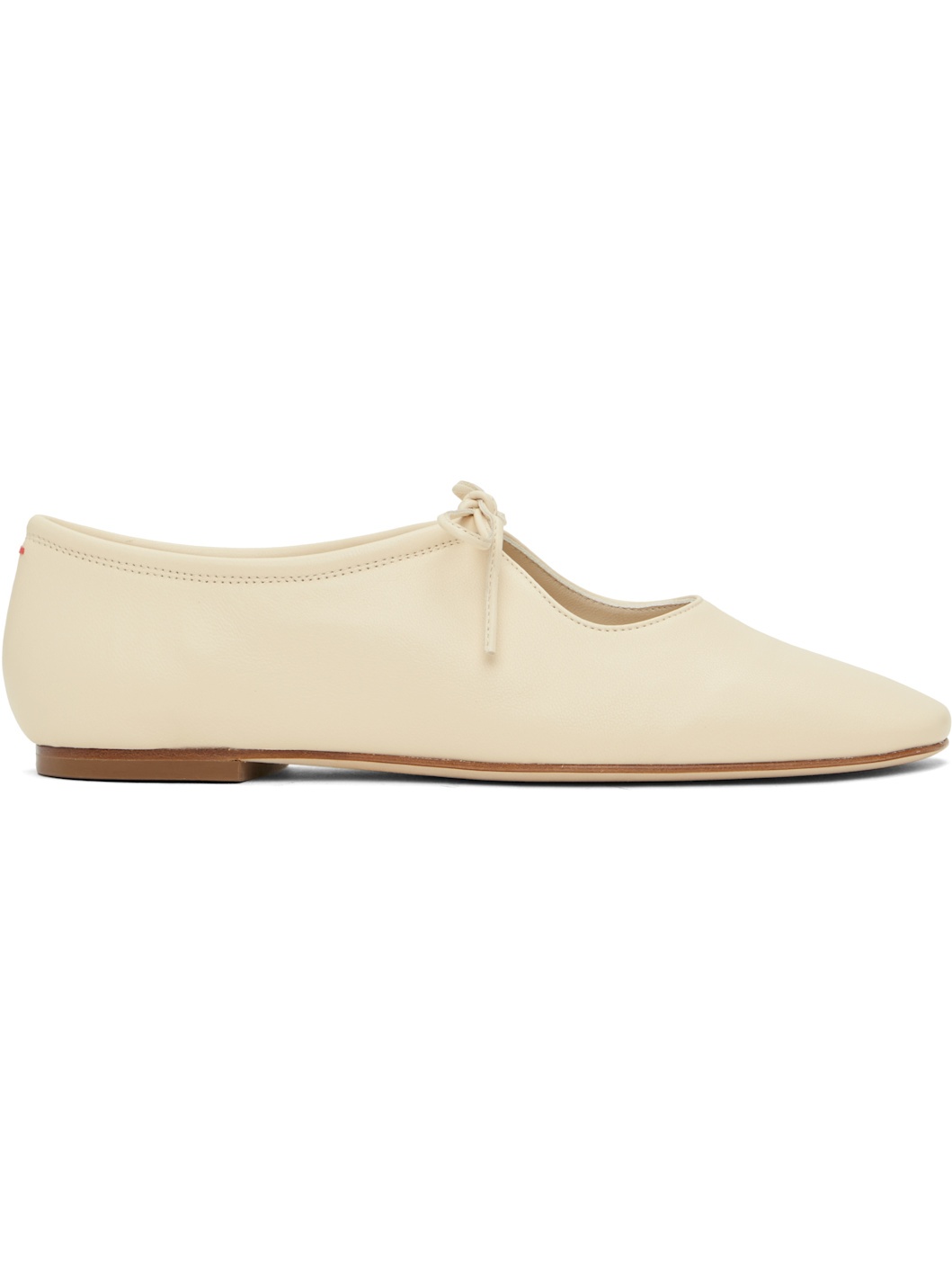 Grained nappa leather ballerina flats in beige. · Square toe · Self-tie closure · Red stitch at heel collar · Suede lining · Suede sole with rubber injection Supplier color: Creamy Upper: leather. Sole: leather, rubber. Made in Italy 251454F118061