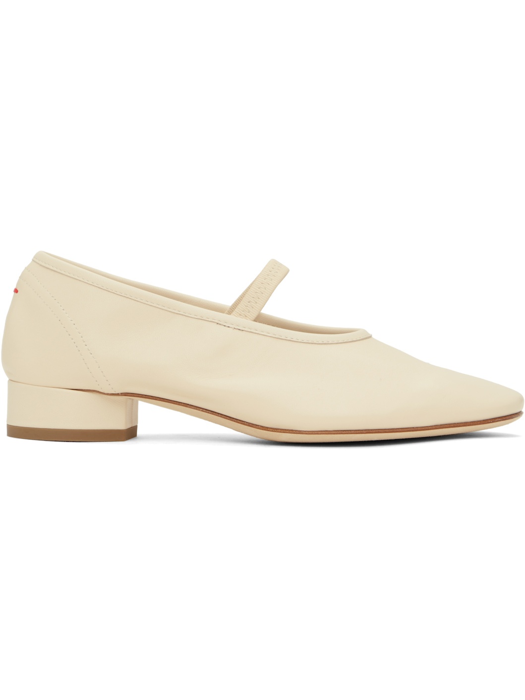 Buffed calfskin ballerina flats in beige. · Square toe · Elasticized strap at vamp · Red stitch at heel collar · Grained leather lining · Covered block heel with rubber injection · Suede sole · Heel: H1" Supplier color: Creamy Upper: calfskin. Sole: leather, rubber. Made in Italy 251454F118064