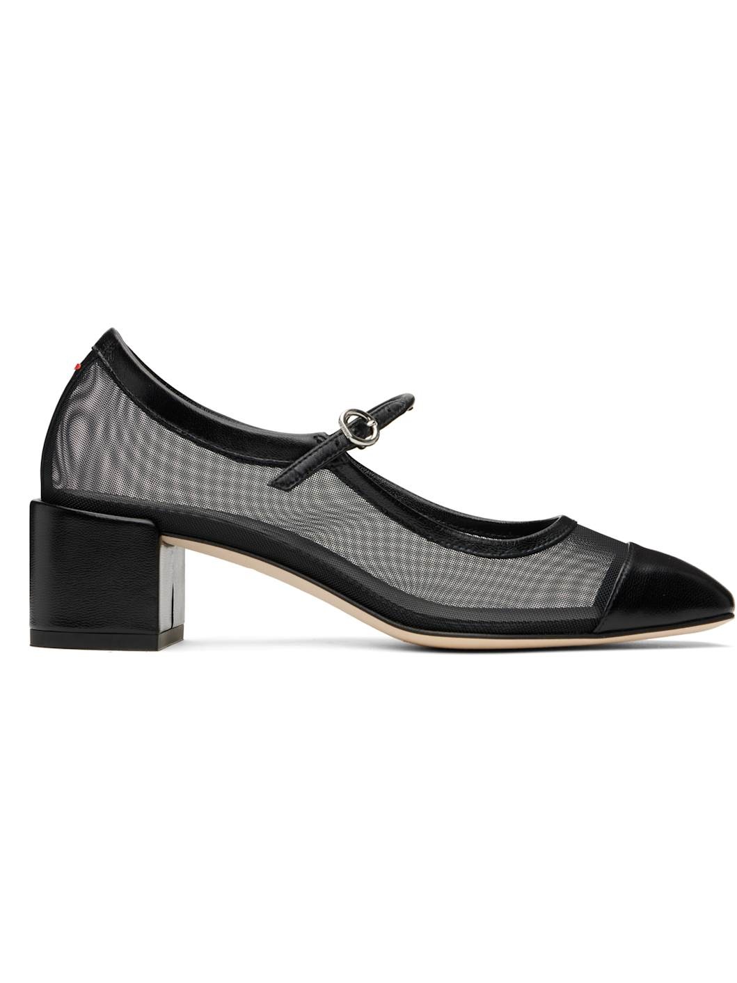 Black Aline Mesh Mary-Jane Heels