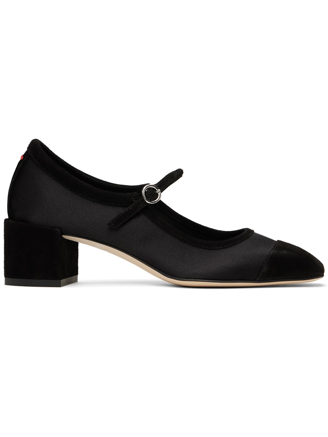 Black Aline Satin & Kid Suede Mary-Jane Heels