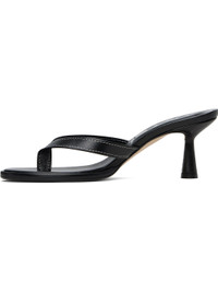 Buffed nappa leather heeled sandals in black. · Open toe · Thong-style strap at vamp · Logo embossed at padded footbed · Buffed lambskin lining · Covered spool heel with rubber injection · Leather sole · Contrast stitching in white · Heel: H2.5" Supplier color: Black nappa Upper: leather. Sole: leather, rubber. Made in Italy 252454F125006