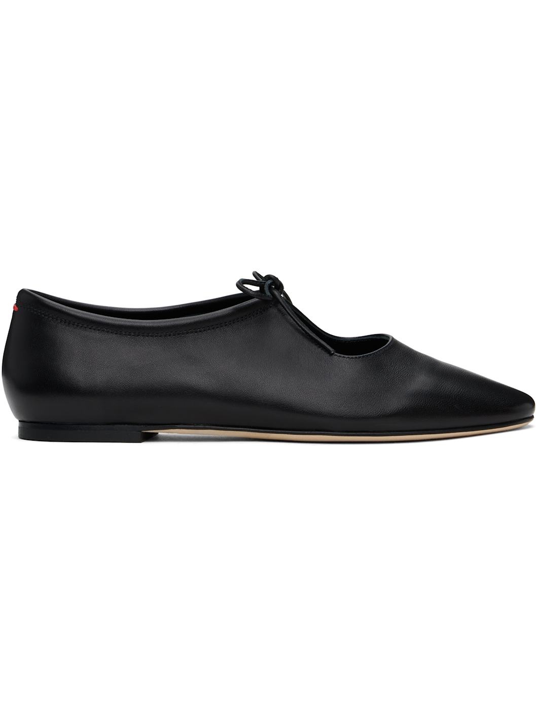 Grained nappa leather ballerina flats in black. · Square toe · Self-tie closure · Red stitch at heel collar · Suede lining · Suede sole with rubber injection Supplier color: Black Upper: leather. Sole: leather, rubber. Made in Italy 251454F118060