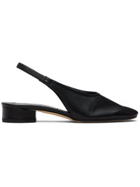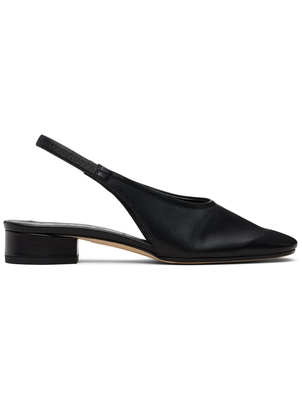 Nappa leather heels. · Elasticized slingback strap · Block heel with rubber injection · Leather sole · Heel: H1" Supplier color: Black Nappa Leather. Made in Italy 261454F122025