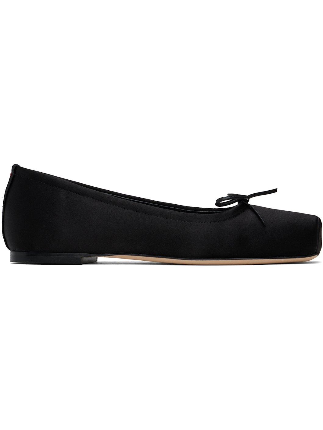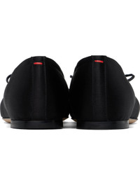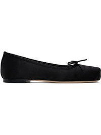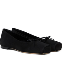 Satin ballerina flats in black. · Square toe · Bow accent at vamp · Red stitch at heel collar · Logo embossed at padded lambskin footbed · Grained lambskin lining · Stacked leather heel with rubber injection · Nubuck sole Supplier color: Black Upper: textile. Sole: leather. Made in Italy 251454F118029