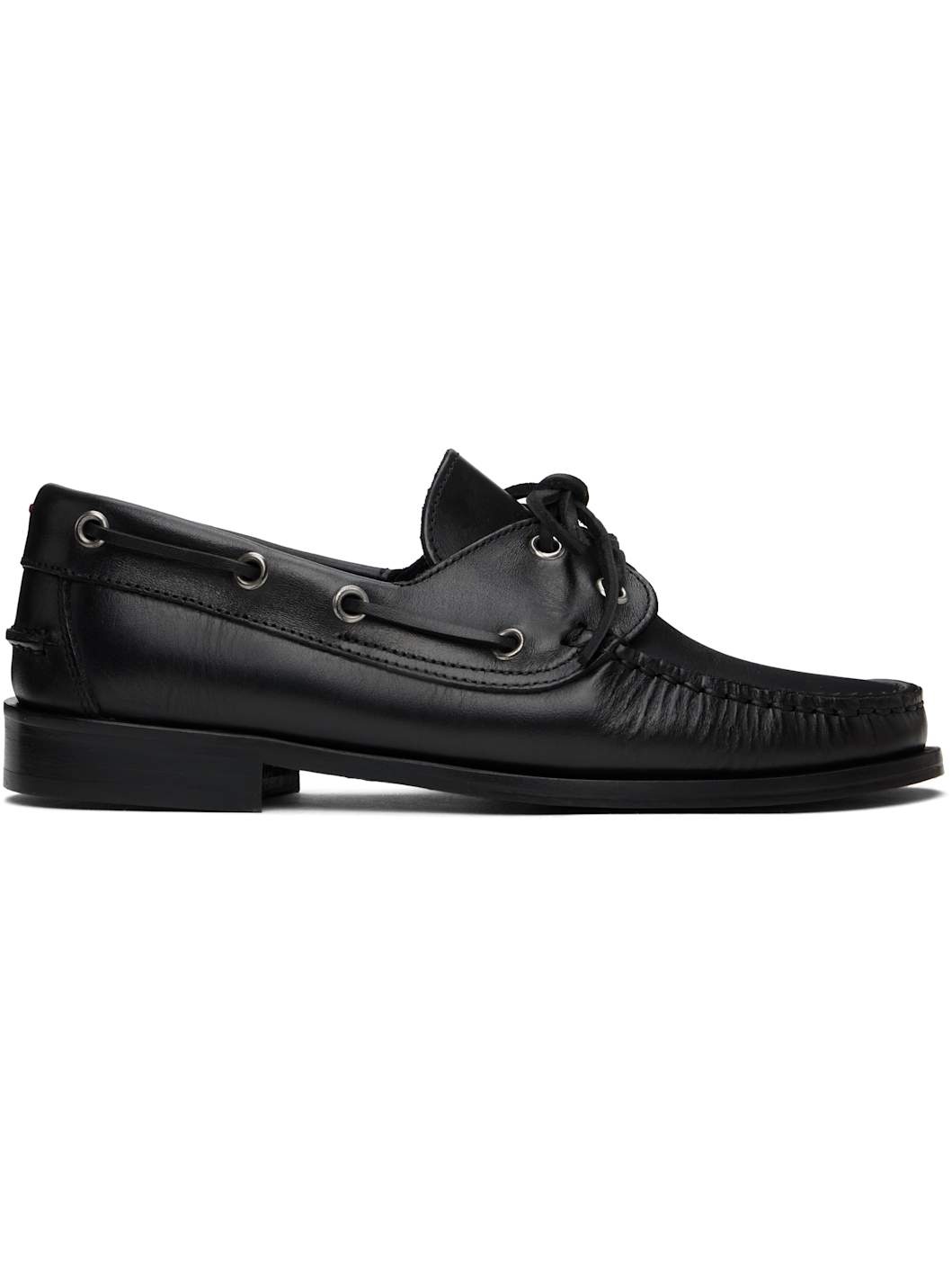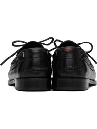 Grained calfskin loafers in black. · Gathering at moc toe · Lace-up closure · Red stitch at heel collar · Pinched seam at heel counter · Grained leather lining · Stacked leather midsole and heel · Rubber sole Supplier color: Black Upper: calfskin. Sole: rubber. Made in Italy 251454F121010