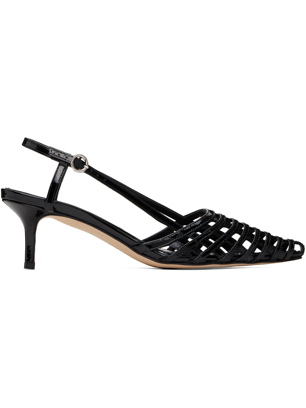 Handcrafted and LWG-certified basket-woven patent calfskin heels in black. · Pointed toe · Pin-buckle slingback strap · Logo embossed at padded lambskin insole · Buffed lambskin lining · Covered kitten heel with rubber injection · Nubuck sole with rubber injection · Heel: H2" Supplier color: Black patent Upper: calfskin. Sole: leather, rubber. Made in Italy 251454F122009