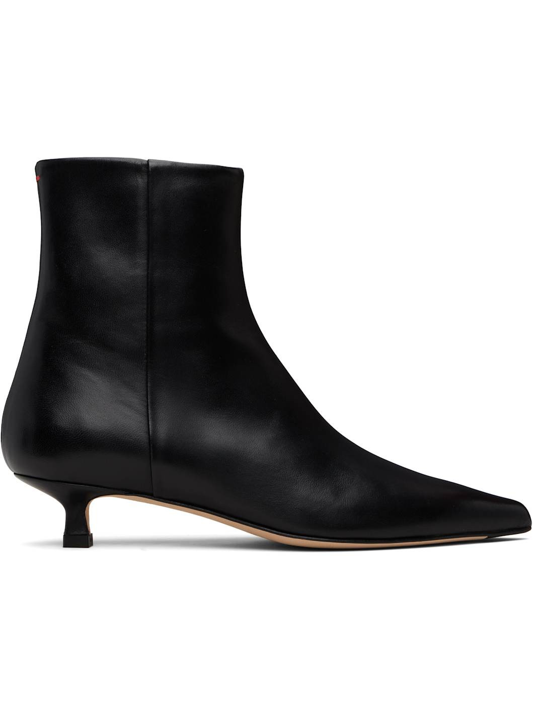 Ankle-high buffed nappa leather boots. · Pointed toe · Zip closure at inner side · Red stitch at heel collar · Buffed lambskin lining · Covered kitten heel · Leather sole with rubber injections · Heel: H1" Supplier color: Black nappa Upper: leather. Sole: leather, rubber. Made in Italy 252454F113034